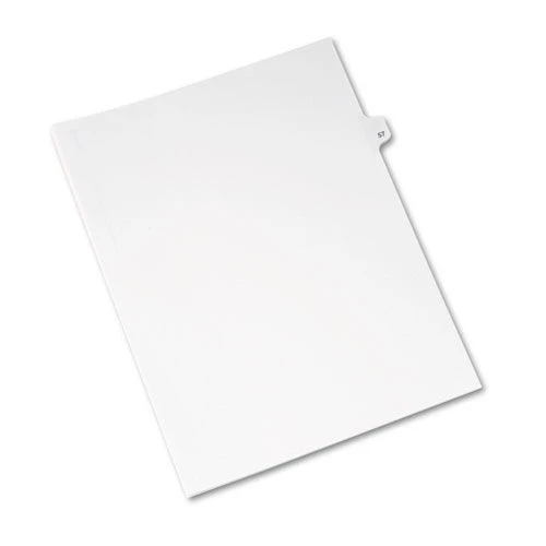 - (25-Piece/Pack) 11 in. x 8.5 in. 10-Tab 57 Tab Titles Preprinted Legal Exhibit Side Tab Avery Style Index Dividers – White – 01057