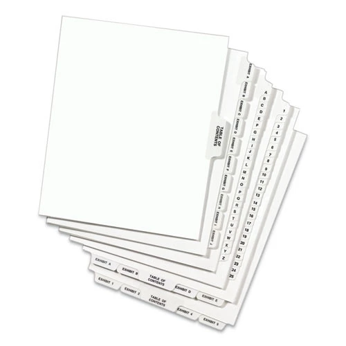 - (25-Piece/Pack) 11 in. x 8.5 in. 26-Tab C-Tab Titles Preprinted Legal Exhibit Side Tab Avery Style Index Dividers – White – 01403