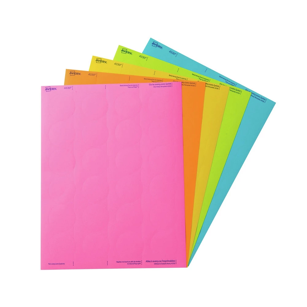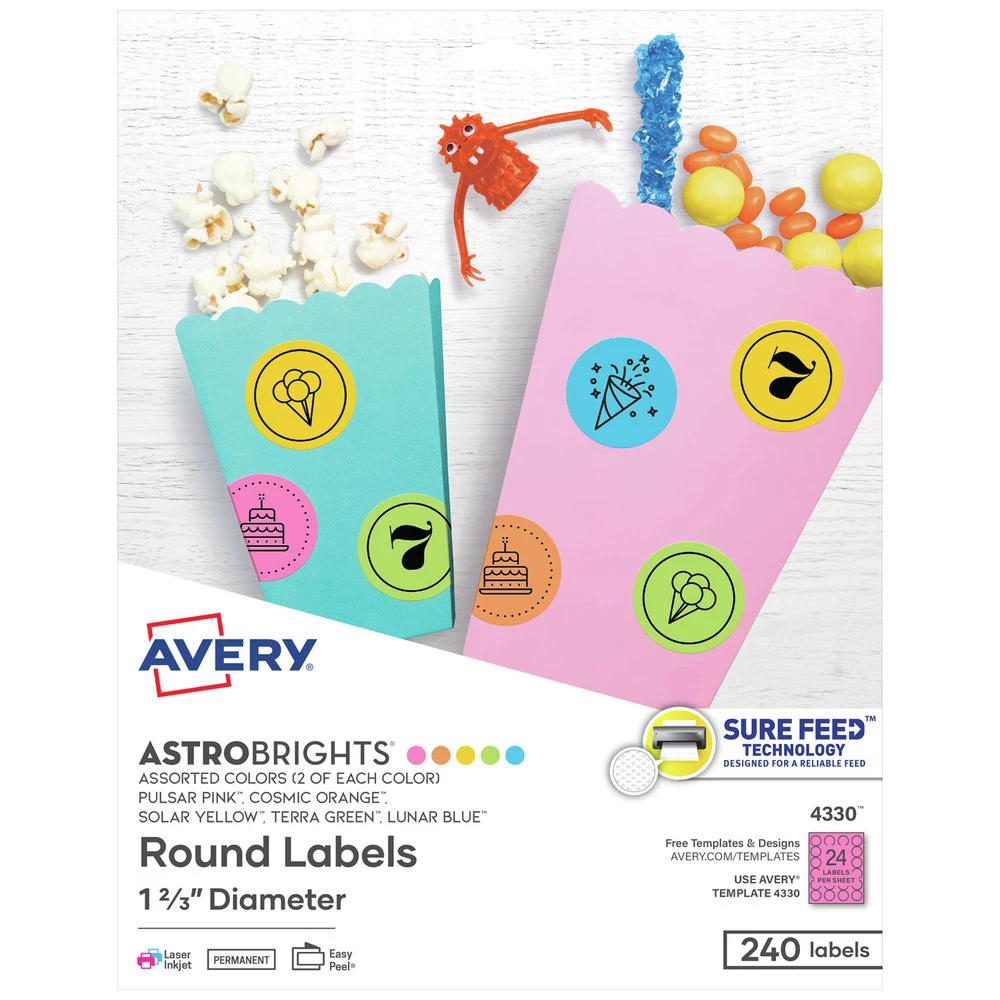 - (240) 1.66 in. Diameter Printable Color Labels with Sure Feed and Easy Peel – Assorted – 4330