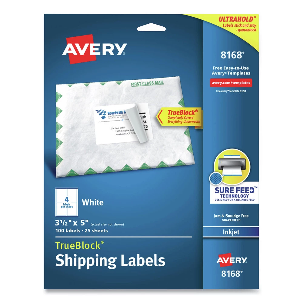 - (4-Pc./Sheet, 25 Sheets/Pack) Shipping Labels w/ TrueBlock Tech – WHT – 8168