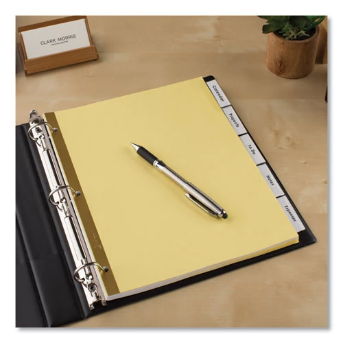 - White or buff paper dividers with clear or multicolor insertable tabs
