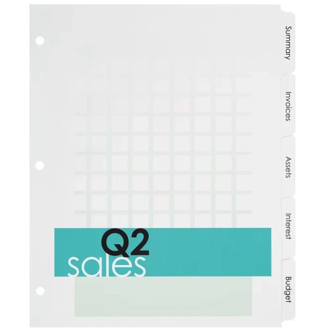 - (5-Pc./Sheet, 25 Sheets/Pack) Print-On Unpunched Dividers – WHT – 11516