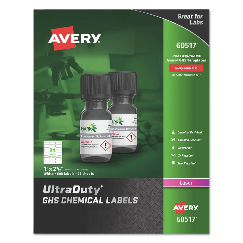 - UltraDuty 24/Sheet 25 Sheets/Pack 1 in. x 2.5 in. Laser GHS Chemical Labels – White – AVE60517