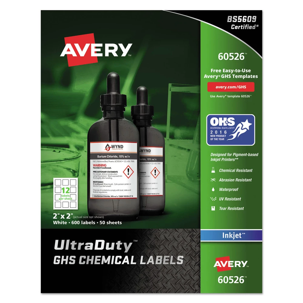 - UltraDuty 12/Sheet 50 Sheets/Pack 2 in. x 2 in. Inkjet Printers GHS Chemical Labels – White – AVE60526
