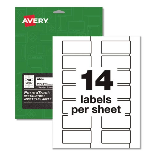 - (112) PermaTrack 1.25 in. x 2.75 in. Destructible Asset Tag Labels – White – 60537