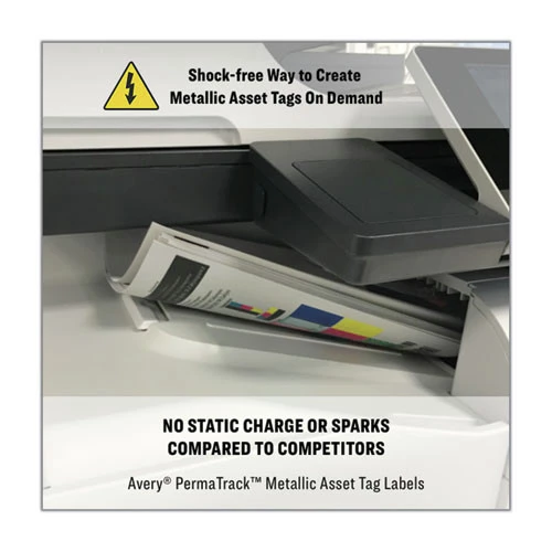 - Labels feature a strong adhesive and the durable metallic material is chemical resistant, waterproof and abrasion resistant