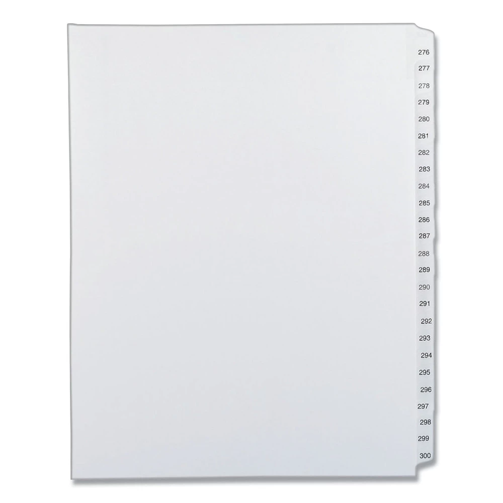 - (1-Set) 11 in. x 8.5 in. 25-Tab 276-300 Tab Titles Preprinted Legal Exhibit Side Tab Allstate Style Index Dividers – White – 82194