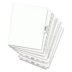 Avery 01079 Preprinted Legal Exhibit 11 In. X 8.5 In. Side Tab Index Dividers – White (25/Pack)